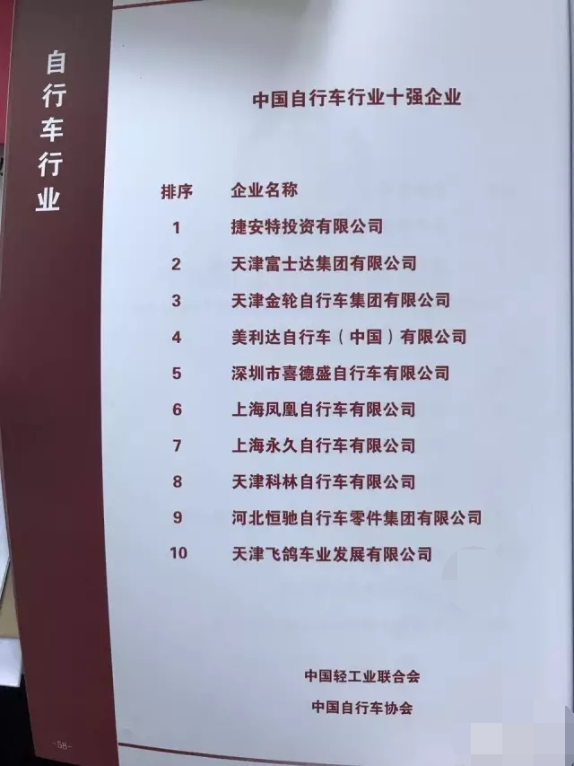 熱烈慶祝我司榮獲“中國輕工業(yè)百強(qiáng)企業(yè)“和””中國自行車行業(yè)十強(qiáng)企業(yè)”榮譽(yù)稱號(hào)